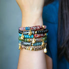 Bold yet effortless, the Dharma Bracelet brings a grounding presence to the wrist. Rich blue beads form a rhythmic circle, punctuated by a contrasting focal bead with golden accents. A trio of petite charms adds movement and meaning, giving it quiet confidence whether worn solo or in a stack.