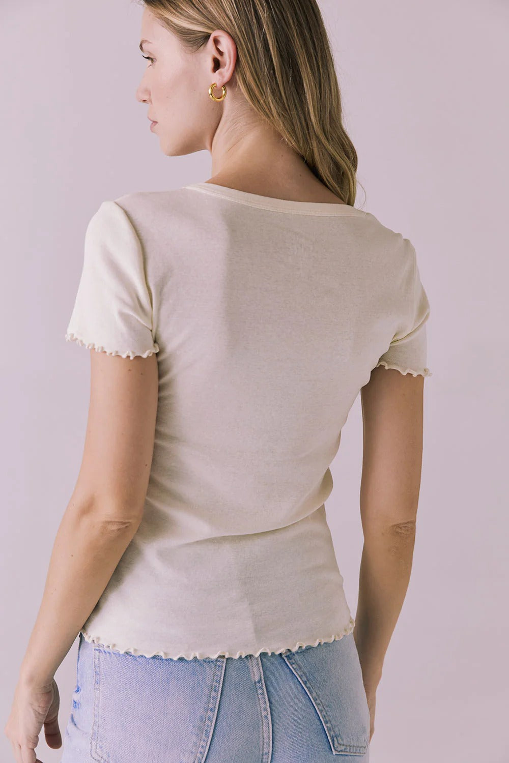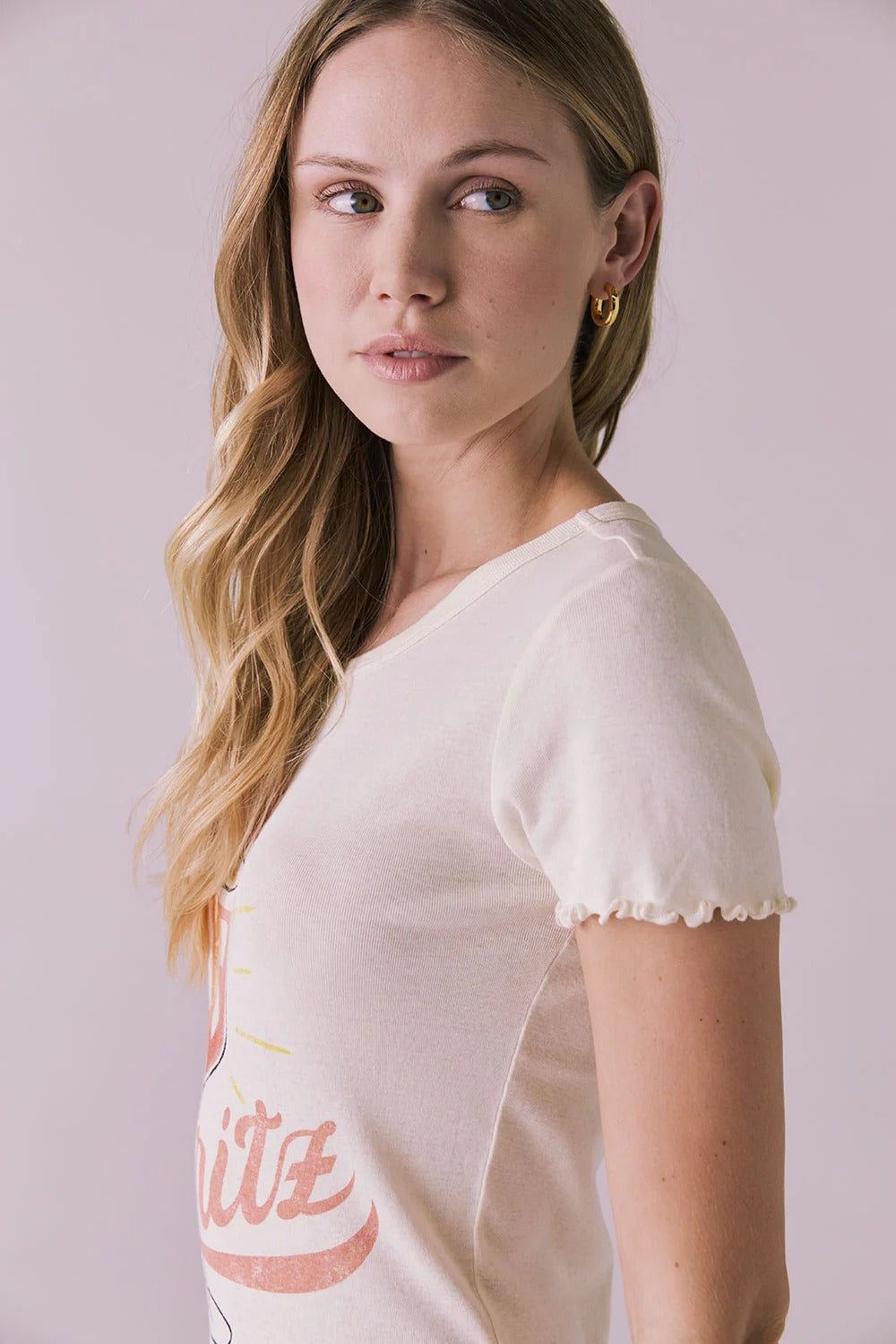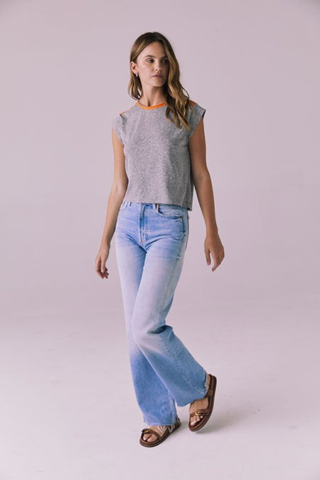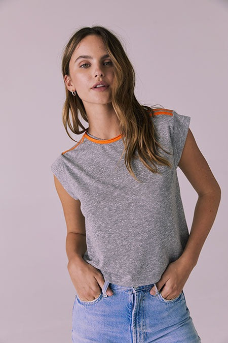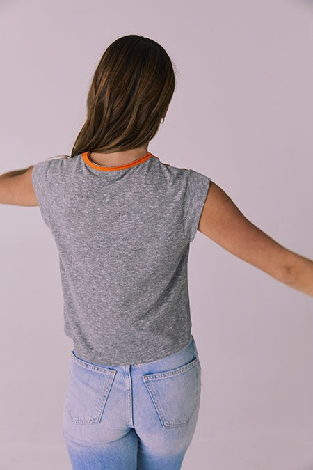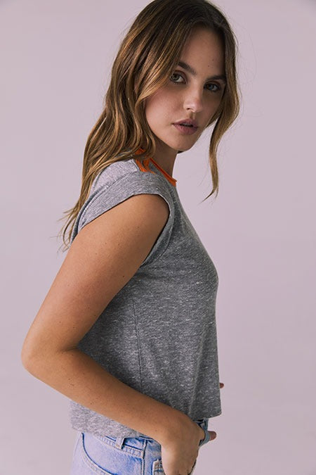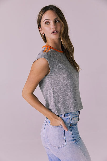 Cropped Cap Sleeve Crewneck Tee in Streaky Grey