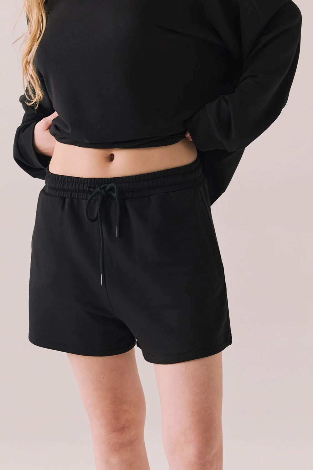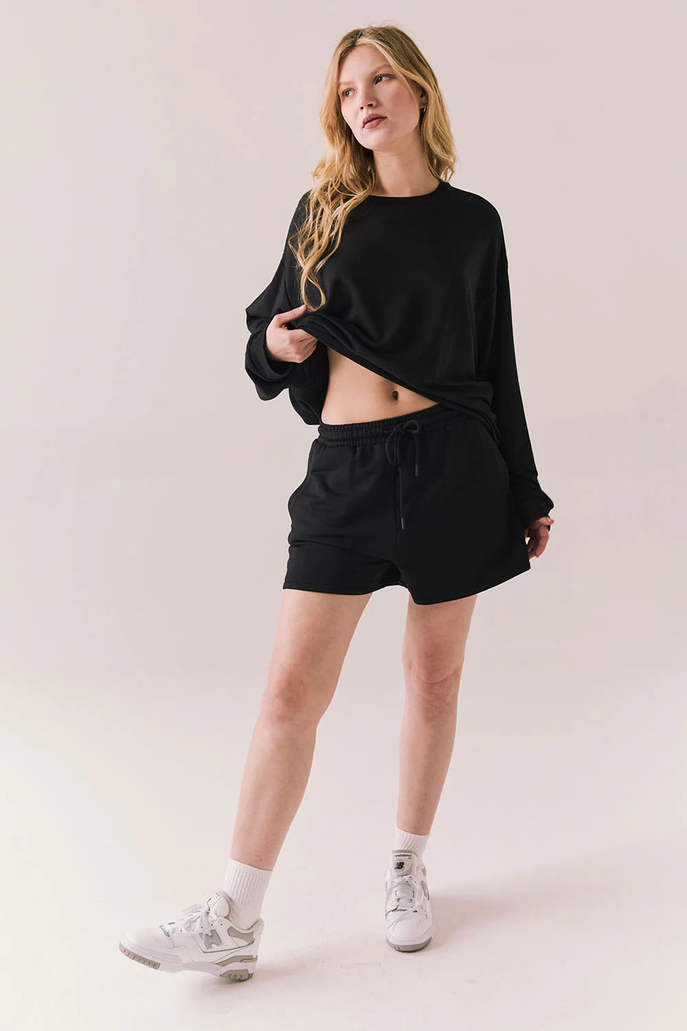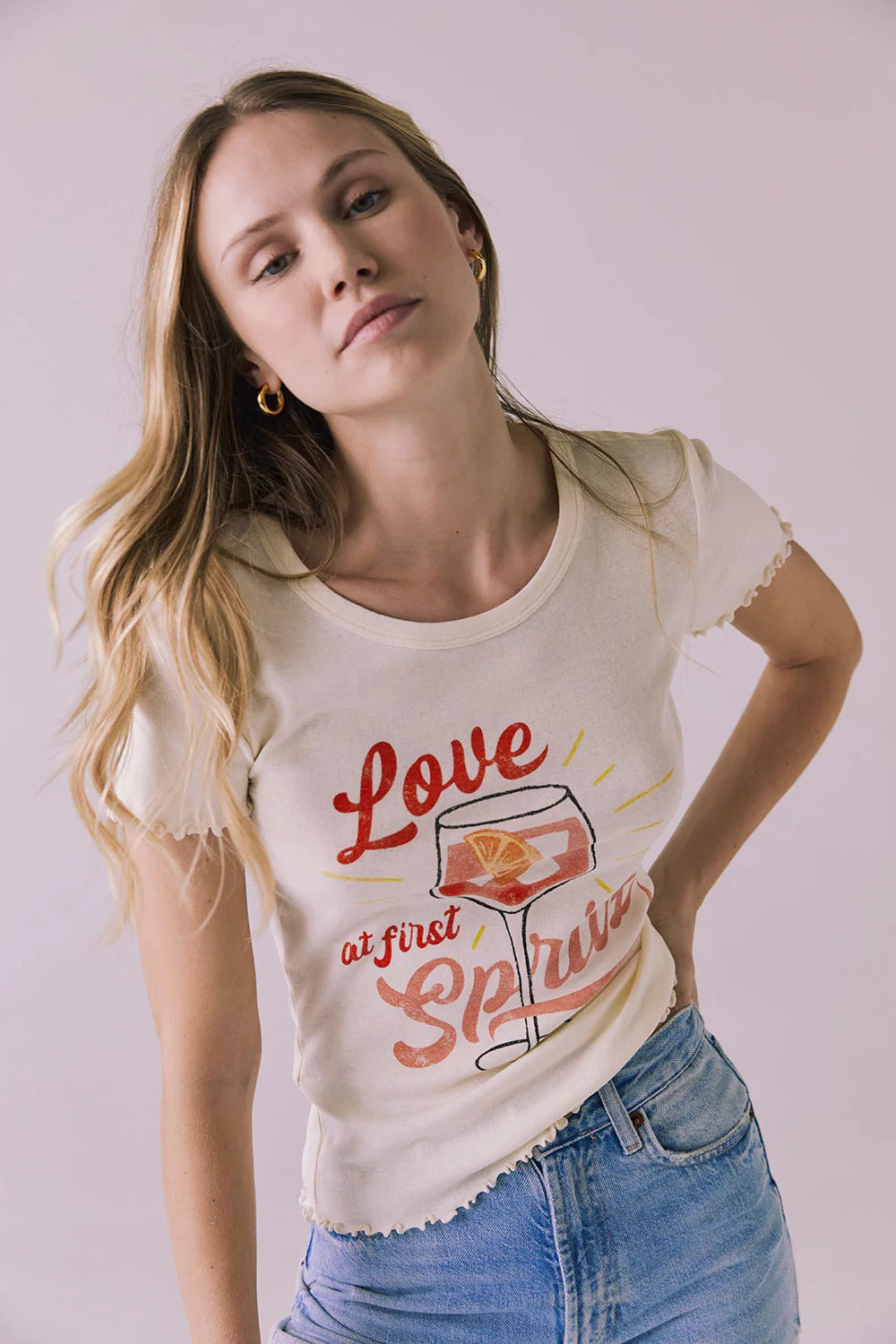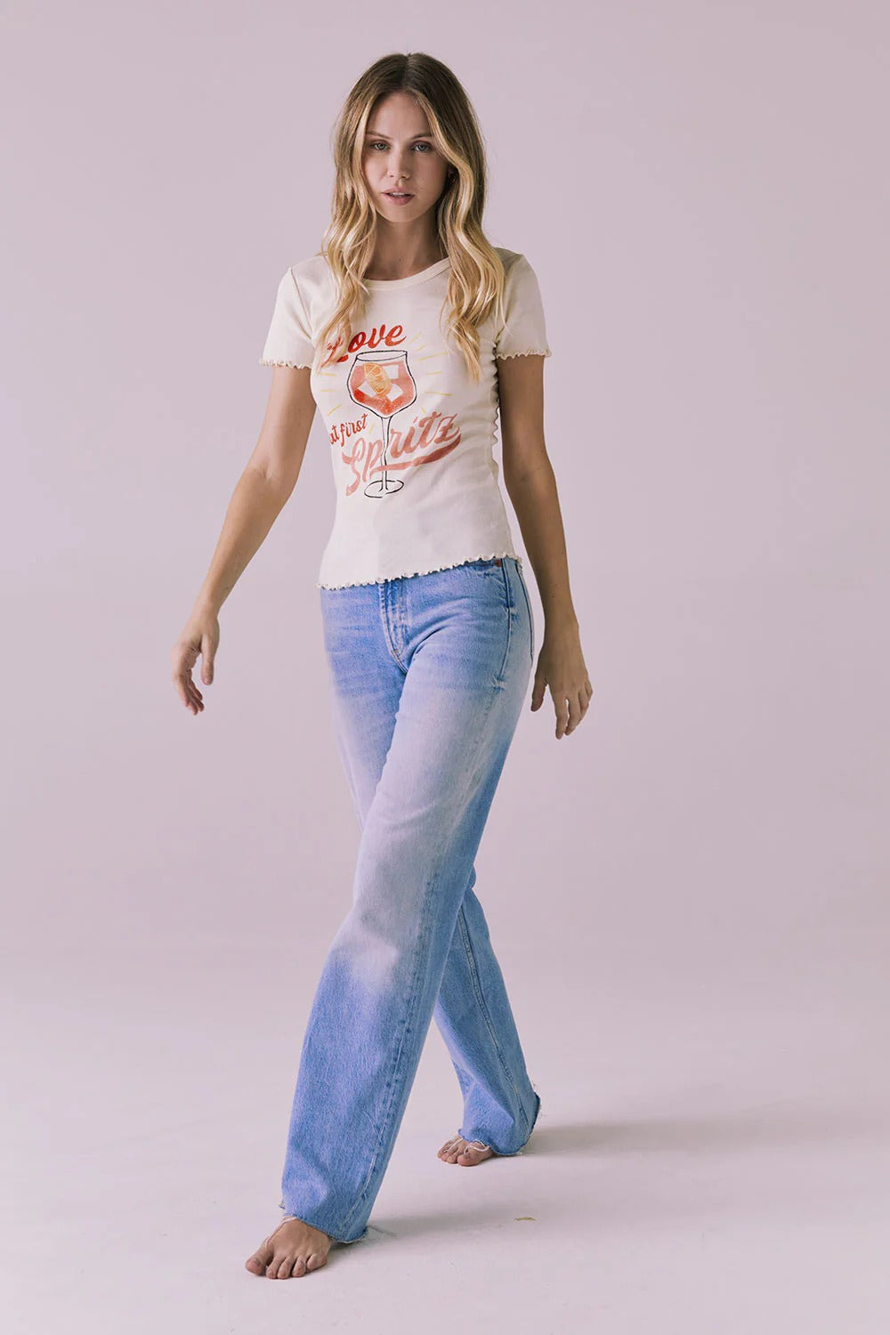 Cropped Cap Sleeve Crewneck Tee in Streaky Grey