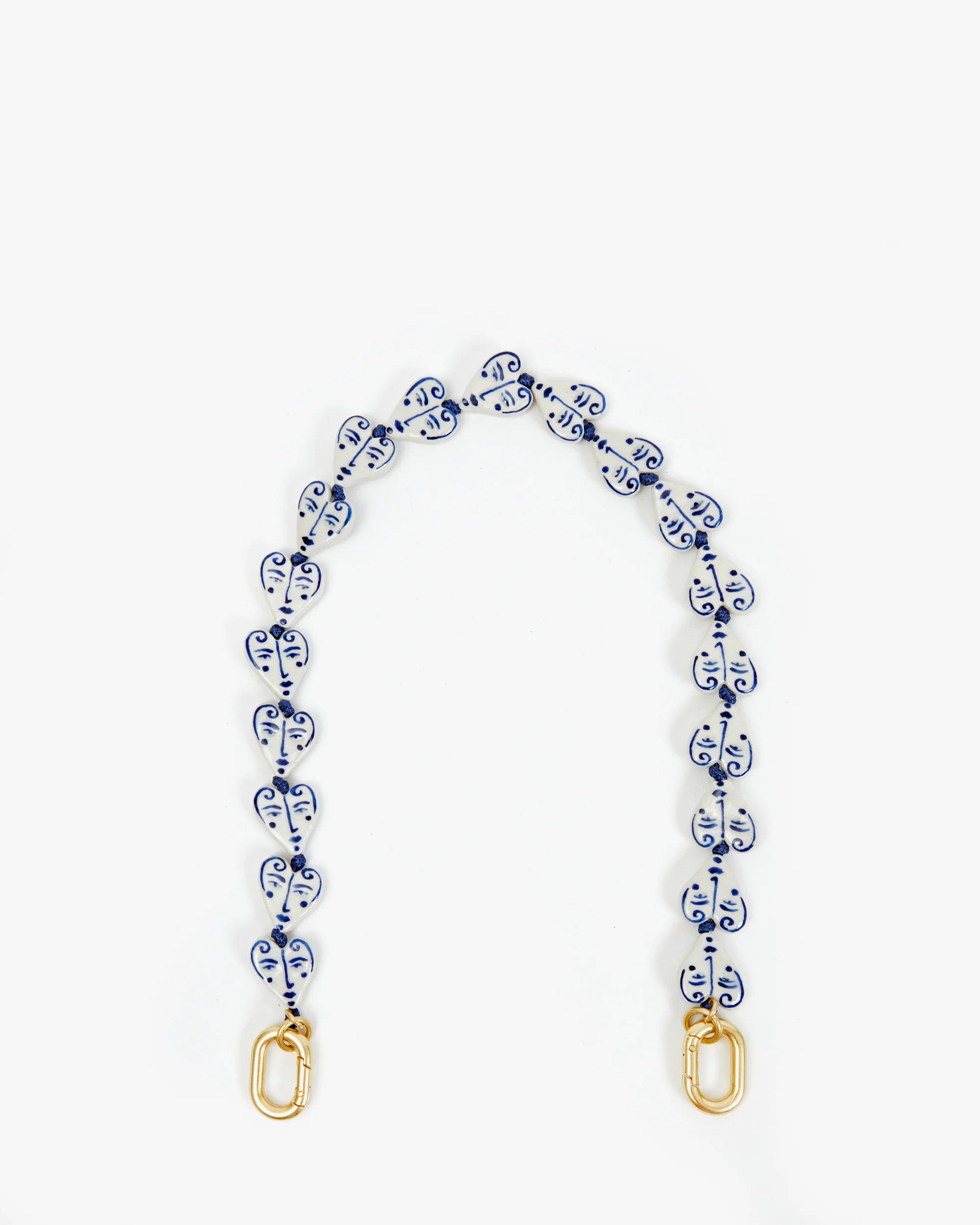 Shortie Strap in Blue & Cream Porcelain Hearts