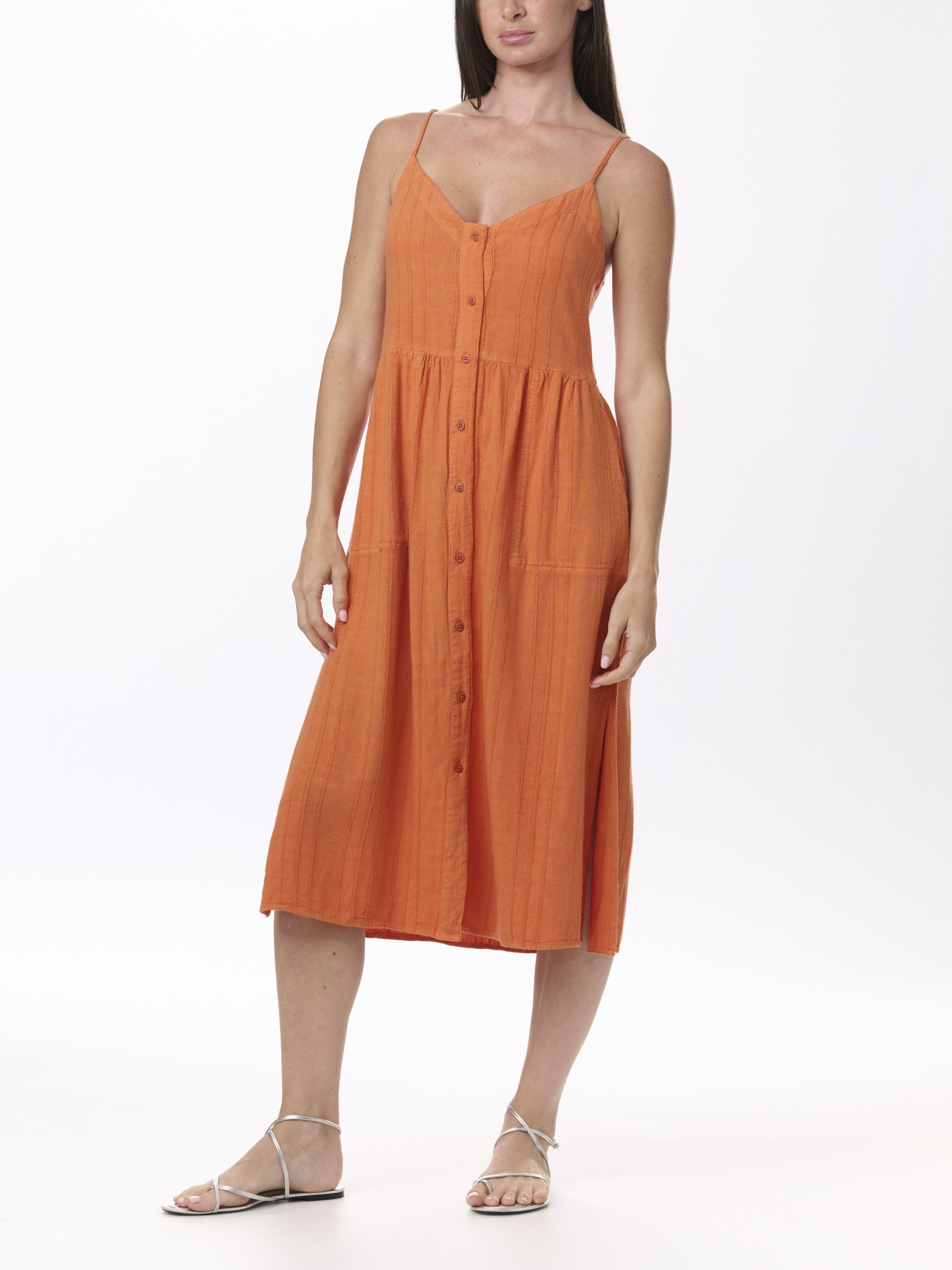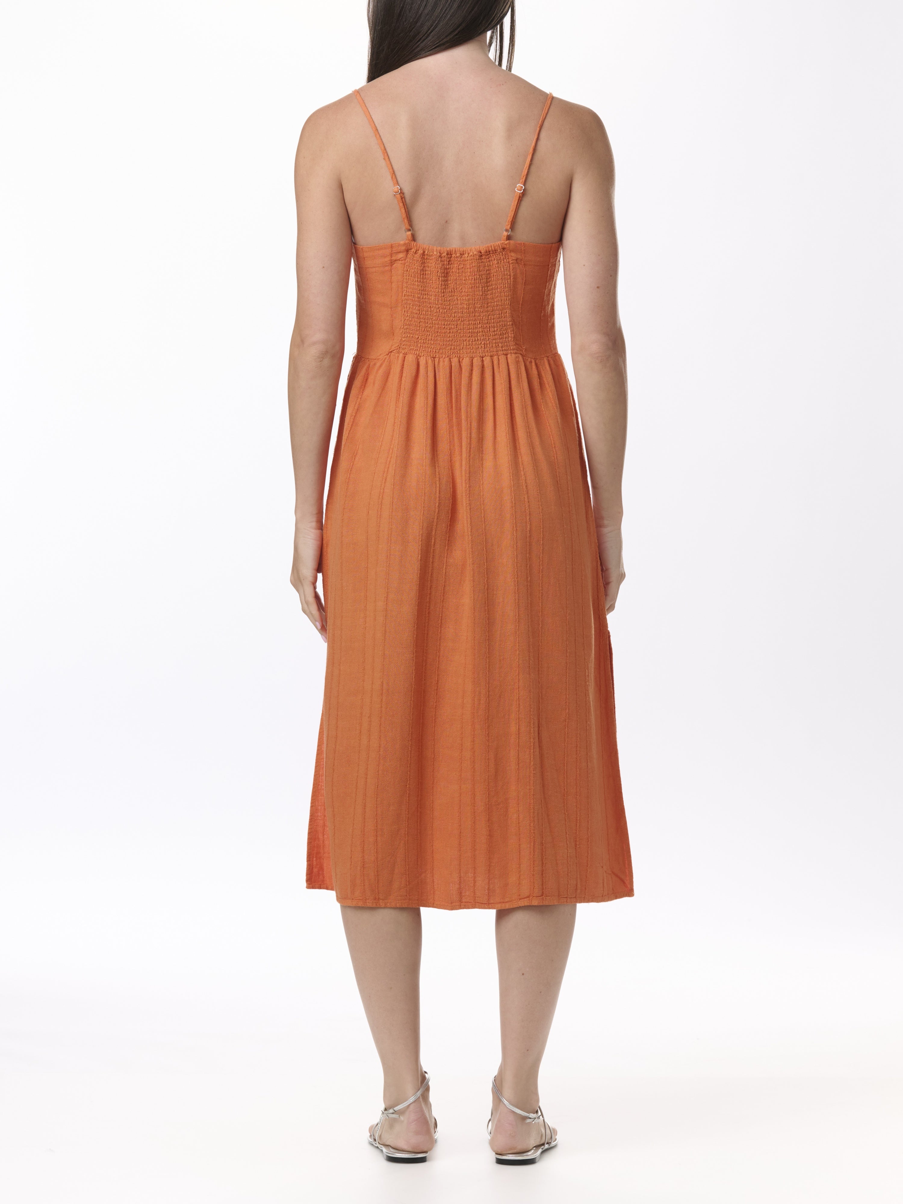 The most relaxed "button-down" you’ll ever slip into, this breezy midi dress is made for OOO moments and spontaneous getaways. A smocked back offers a flattering, flexible fit, while a single side slit adds movement and ease. The classic stripe pattern keeps it timeless—so you’ll love how it looks both in the moment and in your throwback vacation photos. Just add sandals (and maybe a gelato).