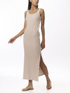 Meet your new go-to: this effortlessly cool maxi dress is made from soft, breathable cotton material for all-day comfort. Designed with a flattering scoop neckline and tank-style straps, it features a side slit for easy movement and just the right amount of edge. Whether you're dressing it up with accessories or keeping it casual with sneakers, this versatile staple makes everyday dressing a breeze.