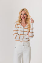 The Striped Cable Zip Hoodie blends classic texture with an effortless, everyday feel. Crafted in a soft cable-knit design, it features horizontal stripes, a full zip front, and a hood for a relaxed yet polished look. The ribbed trim and easy fit make it perfect for layering over tees or pairing with denim and matching knits, delivering cozy comfort with a refined finish.