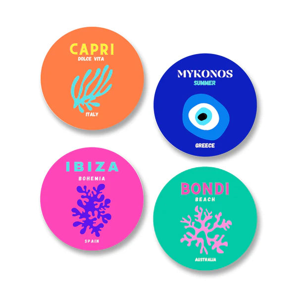 Protect your surfaces with style using our ceramic coaster set. Designed to guard against water rings and spills, these coasters are the perfect companion for everything from morning coffee to evening cocktails. Each set includes four ceramic coasters with cork bottoms to keep them securely in place—an effortless upgrade to your daily routine.