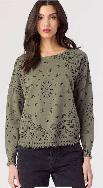Bandana Distressed Crew in Denim