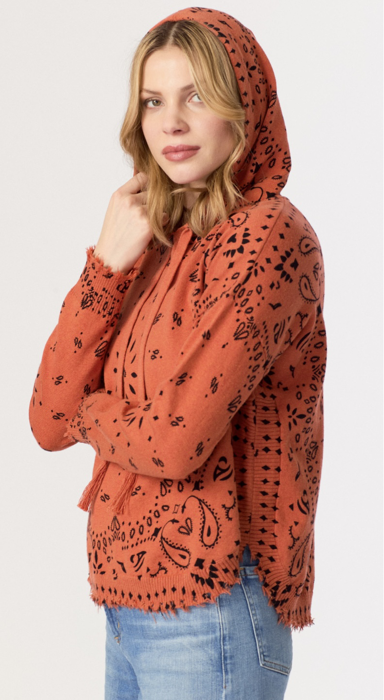 Bandana Distressed Hoodie in Burnt Orange