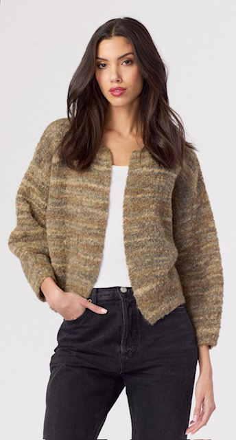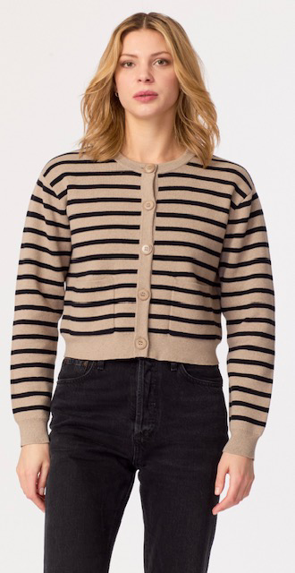Striped Button Front Cardi in Mushroom/Black