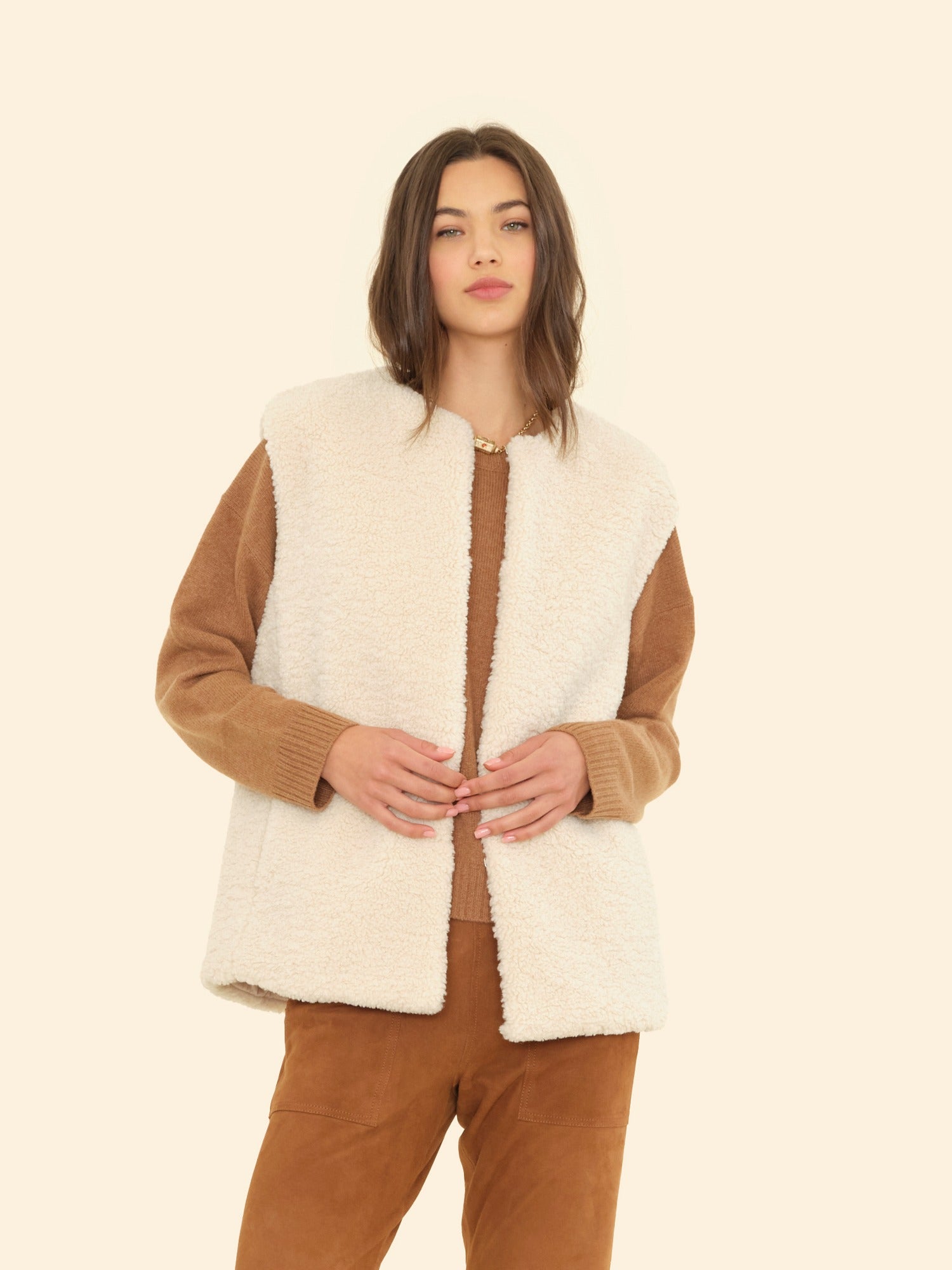Faux Leather Cardi Jacket w/ Fur Cuffs in Black