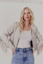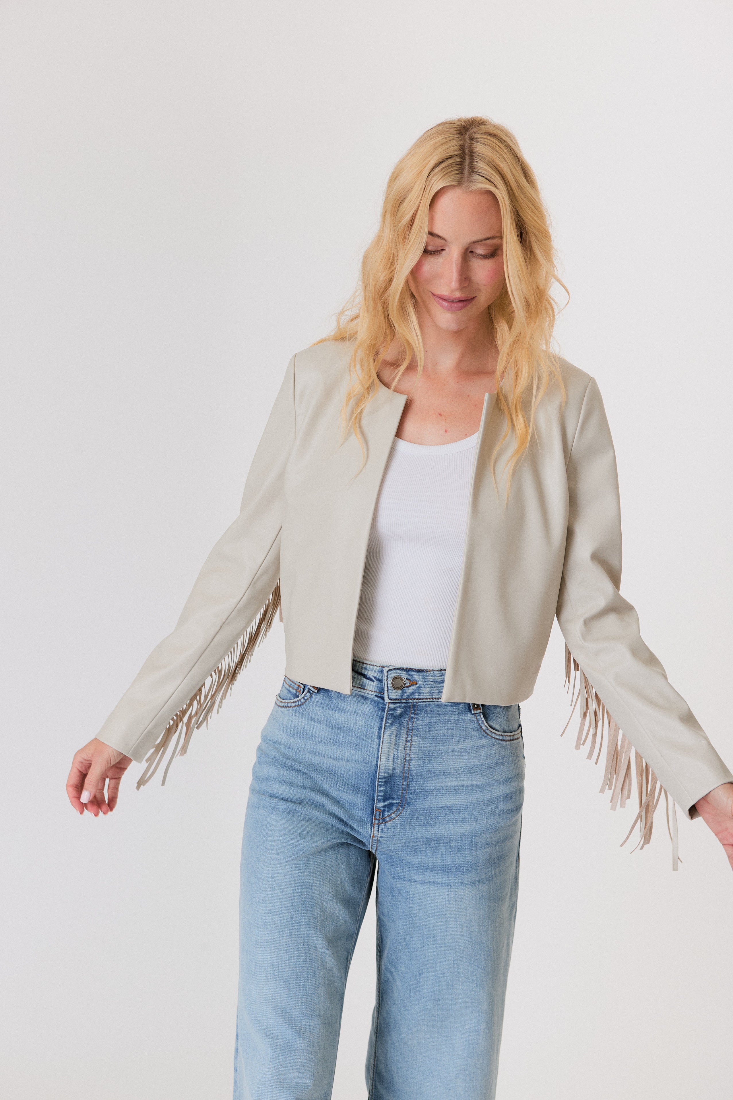 The Fringe Cardi delivers a fresh, feminine twist on a classic silhouette. Designed with a clean, open front and cropped shape, it’s elevated by statement fringe detailing along the sleeves that adds movement and edge. Tailored yet easy to style, this lightweight layer pairs effortlessly with denim, dresses, or tailored separates for a modern take on everyday outerwear.
