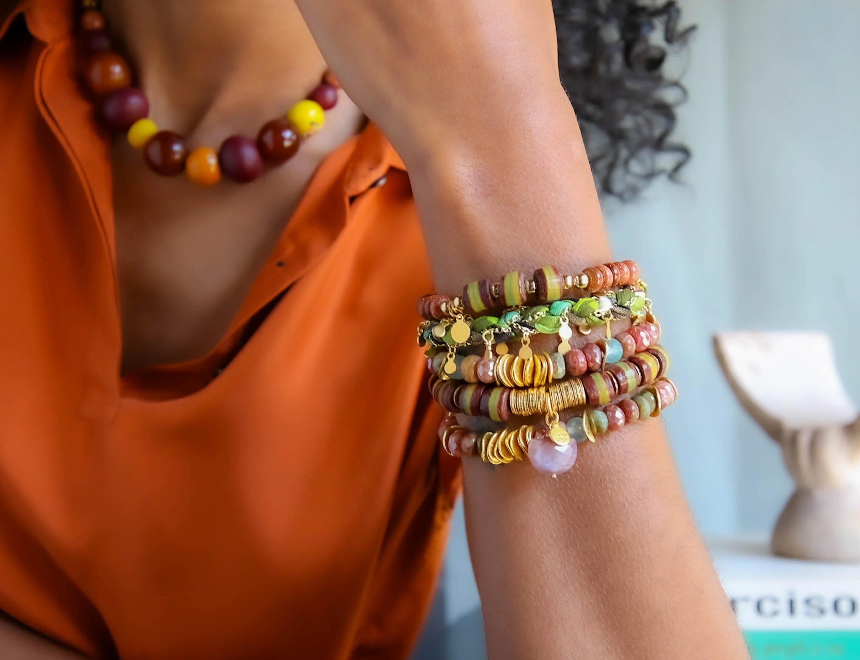 Beaded Cord Necklace in Multi