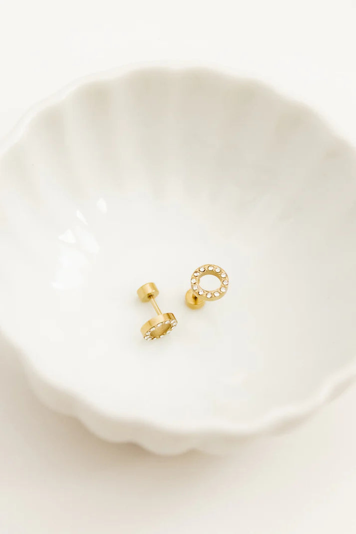 With a timeless, elegant design, the Lainey Gold Stud Earrings feature an 8mm open-circle silhouette accented with delicate CZ stones for a subtle sparkle. Crafted from 100% surgical-grade stainless steel, they’re lightweight, durable, hypoallergenic, and safe for sensitive ears. The secure screwback design ensures a comfortable, stay-put fit for both adults and teens. Waterproof and effortlessly versatile, these studs are perfect for everyday wear—adding just the right touch of shine whether you’re dressing up or keeping it casual.