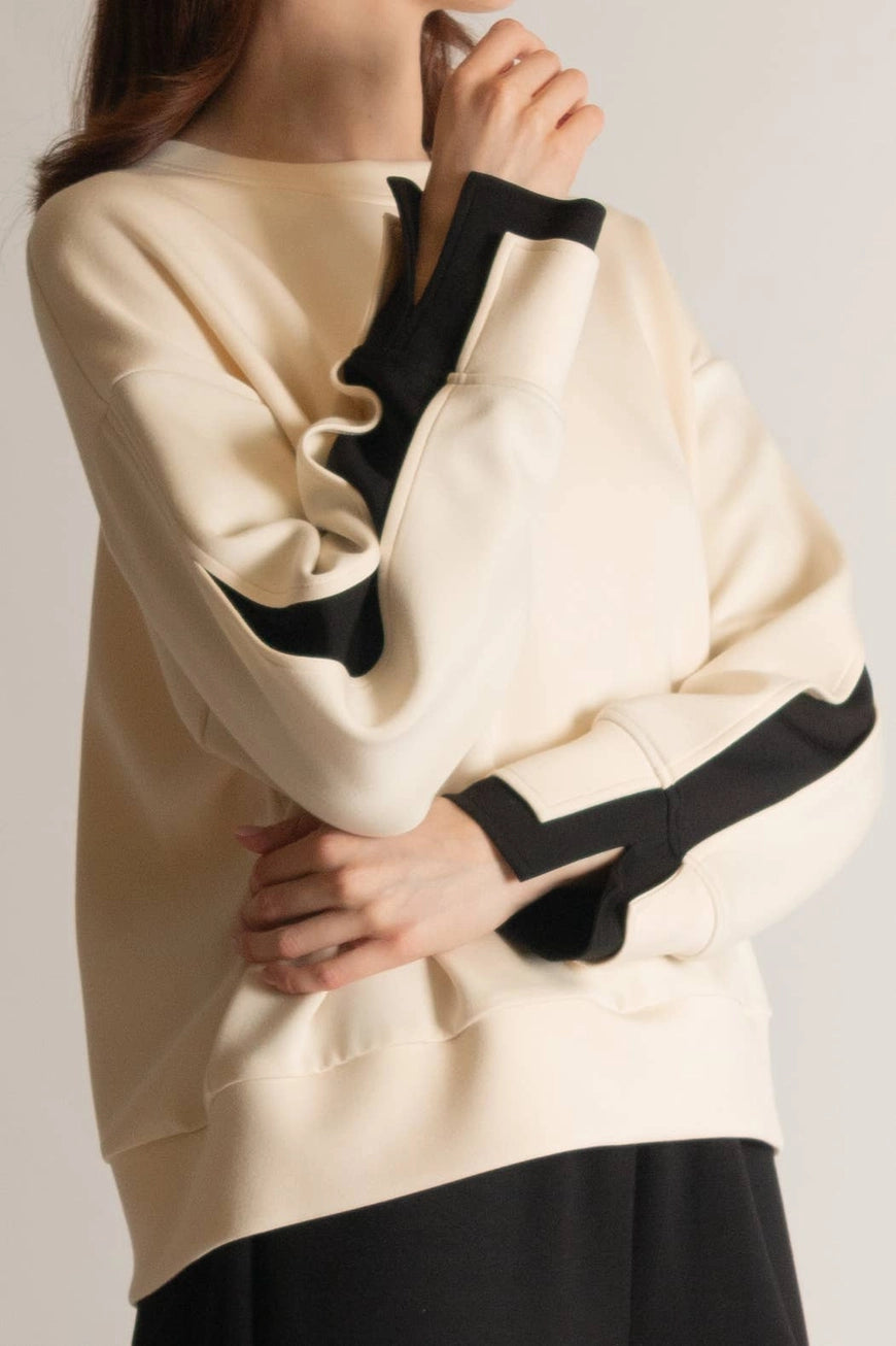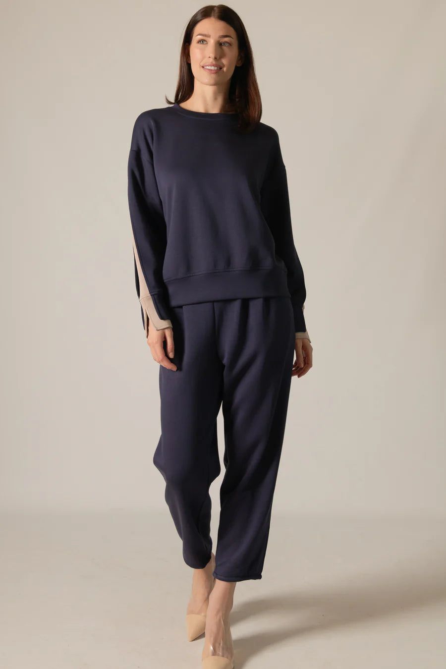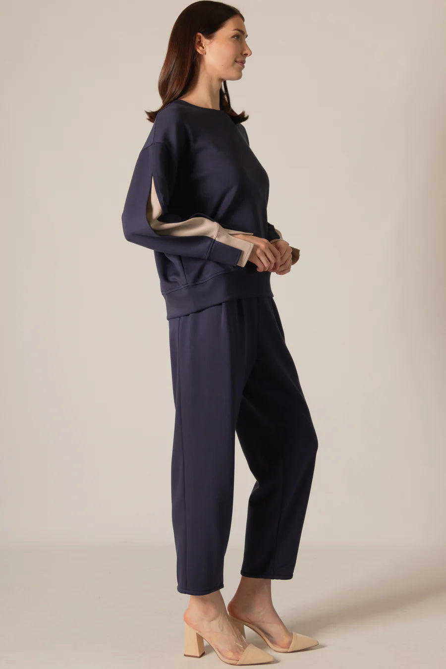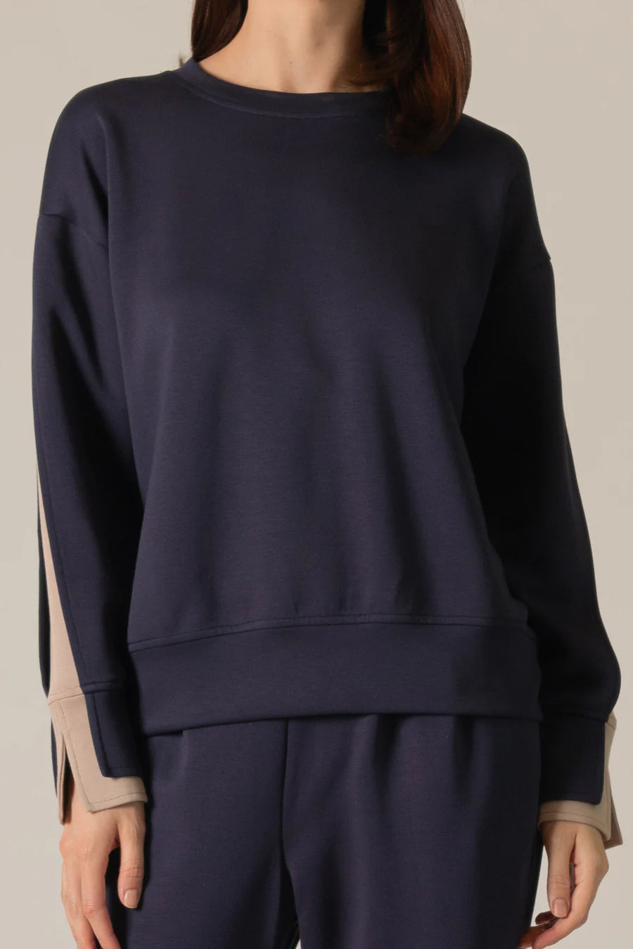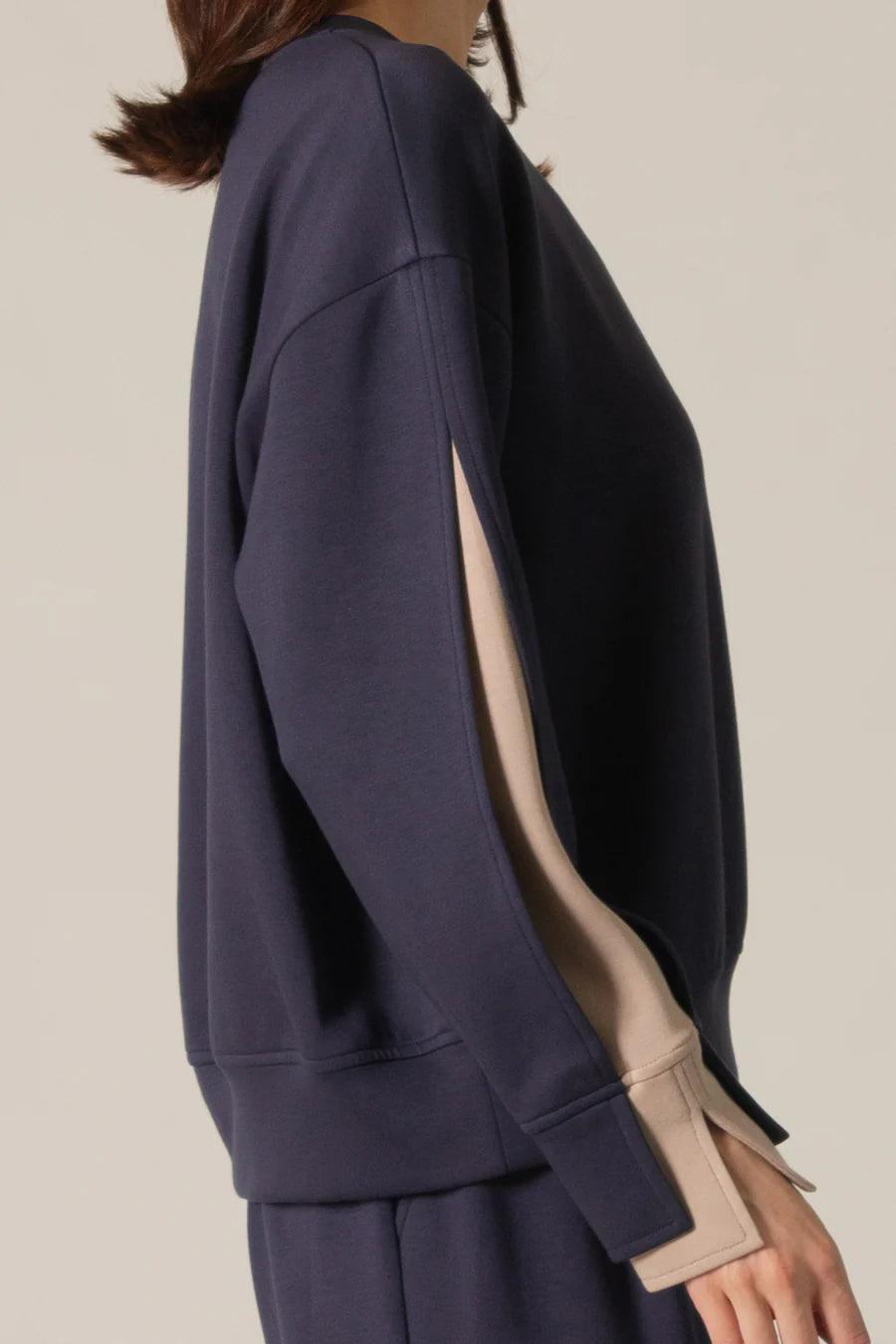 Josie Double Layered Sleeve Top in Navy/Taupe