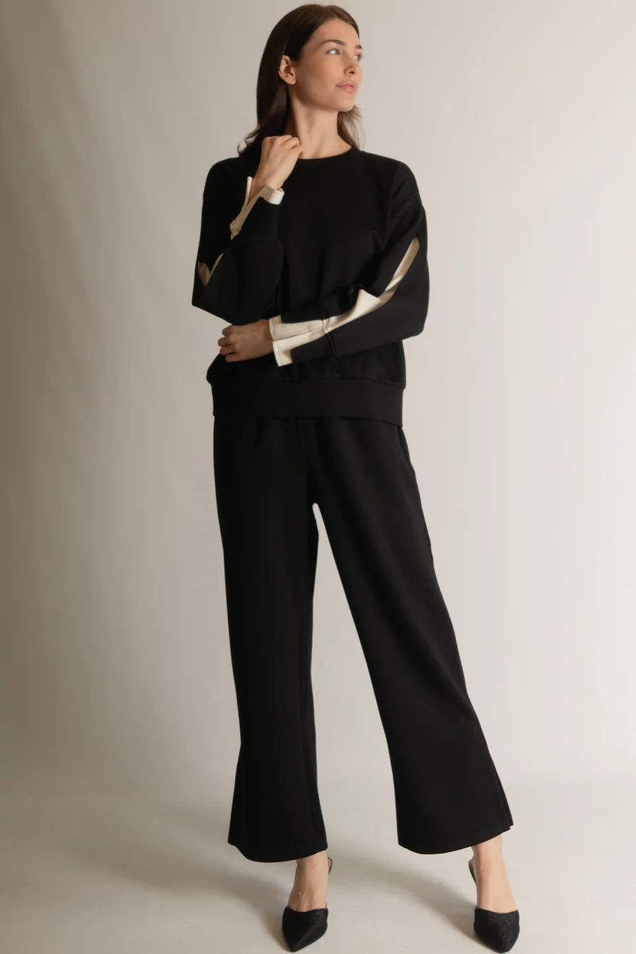 Blake Wide Leg Pants with Bottom Slits in Black