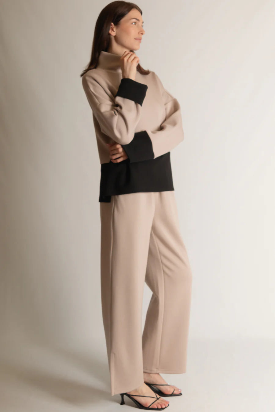 Blake Wide Leg Pants with Bottom Slits in Taupe