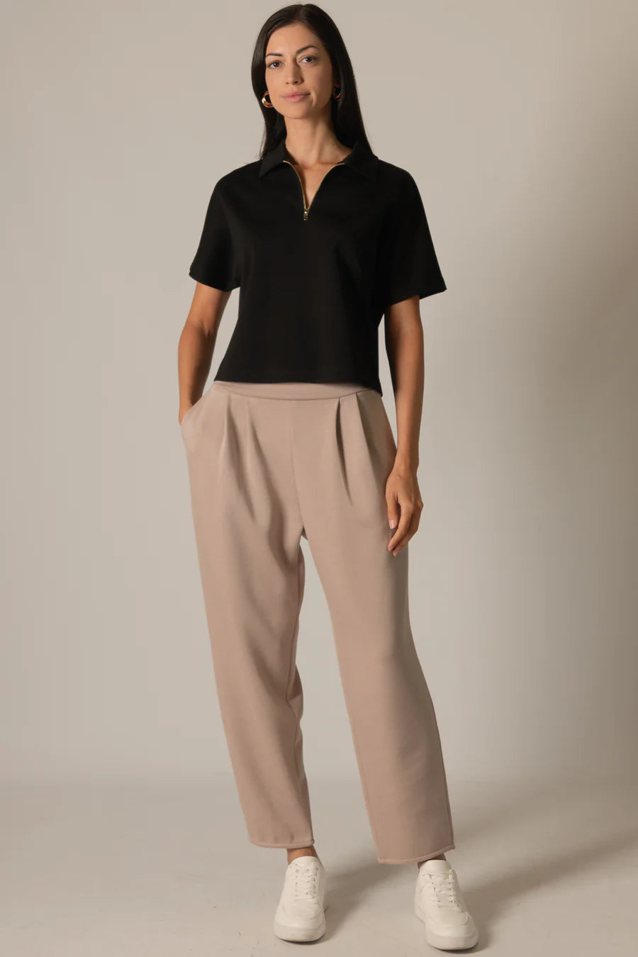 Millie Short Sleeve Zip Up Top in Black