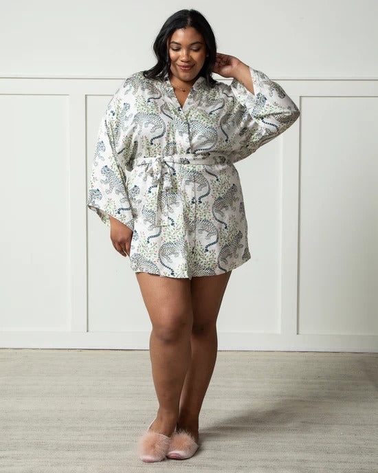 Eco Satin Glam Mini Robe in Bagheera Wedding Cake