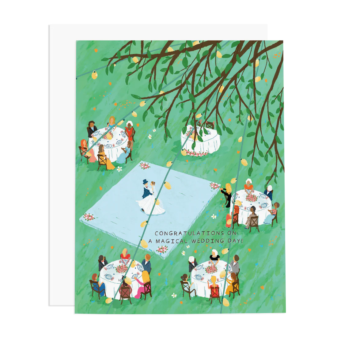 "Congratulations on a magical wedding day!" A magical and romantic wedding highlighting a couple's romantic first dance. Cheers to your special day!
