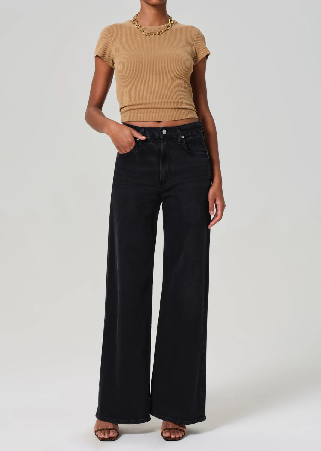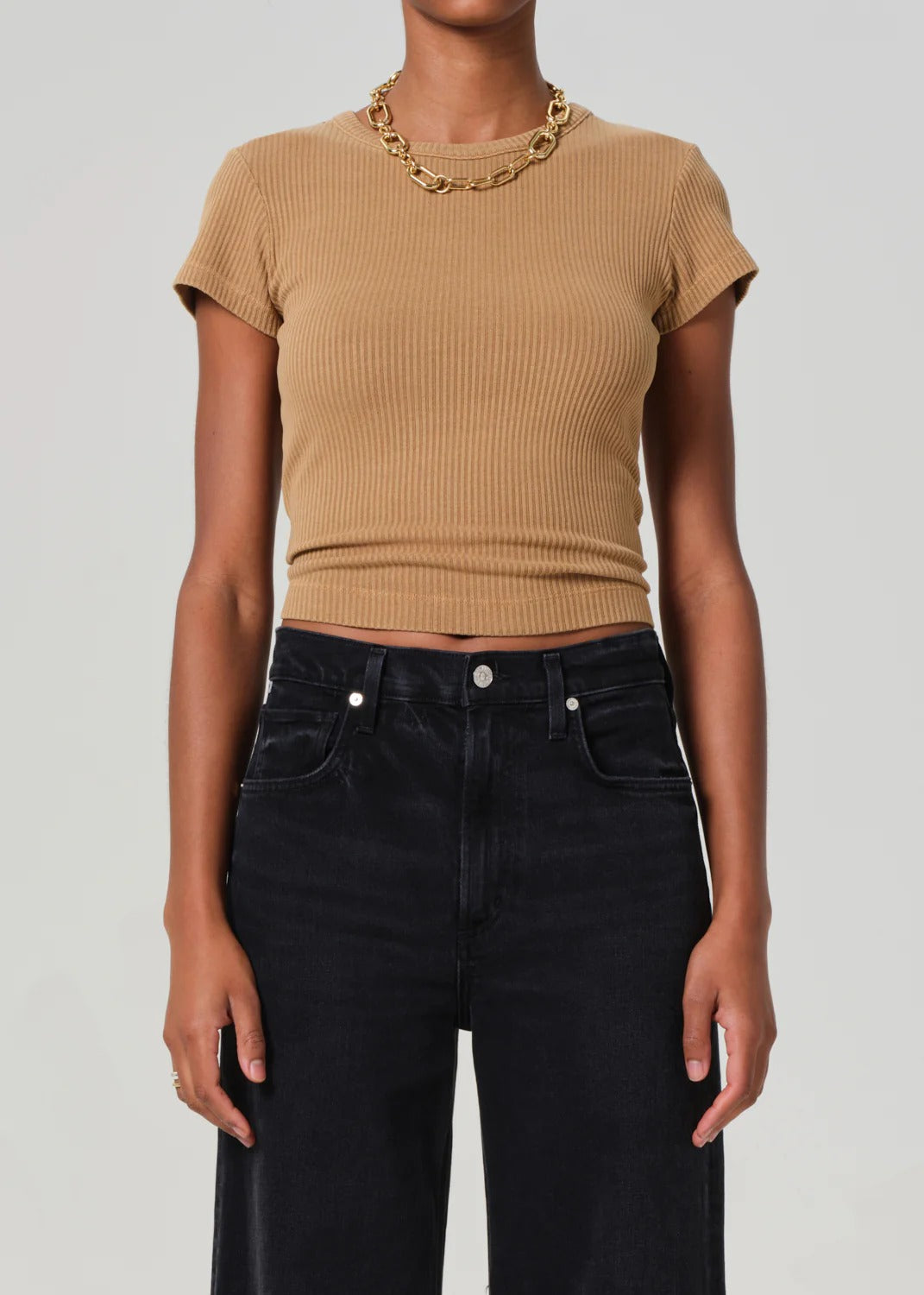 - Light brown fitted short sleeve shirt