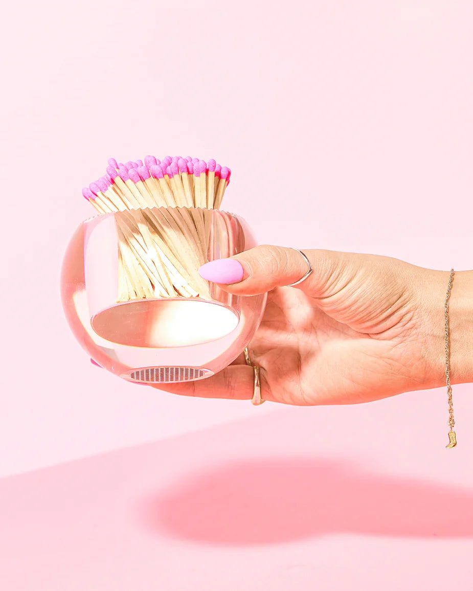 Get fired up with our Acrylic Match Striker! This chic acrylic accessory adds instant flair to your coffee table, desk, or any space that needs a spark. Each piece comes with 140 matches and a built-in strike pad on the bottom for easy lighting. Stylish, functional, and ready for any moment—let’s get lit!