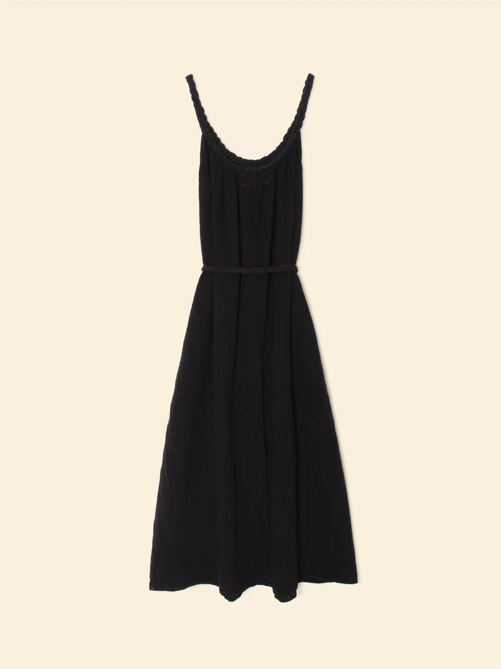 Easy Breezy. Meet Braiden, your new go-to for effortless style. Crafted from our washed double-faced cotton gauze for a soft, gently crinkled texture, this flowy tank midi dress features a twisted braid neckline and straps, side seam pockets, and a braided self-tie belt for the perfect finishing touch.
