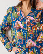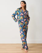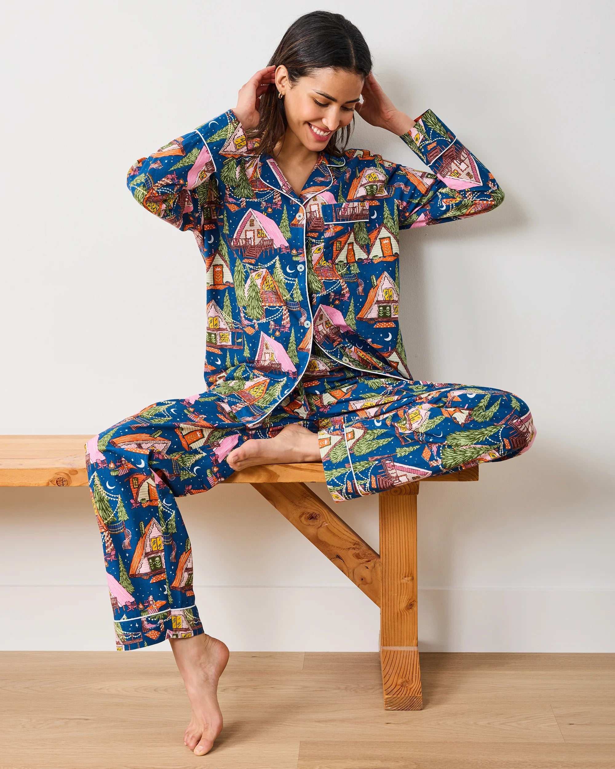 - Fit: Button-down top with relaxed fit that's roomy and chic. Mid-rise pants with elastic waistband, adjustable drawstring, and 28" inseam.