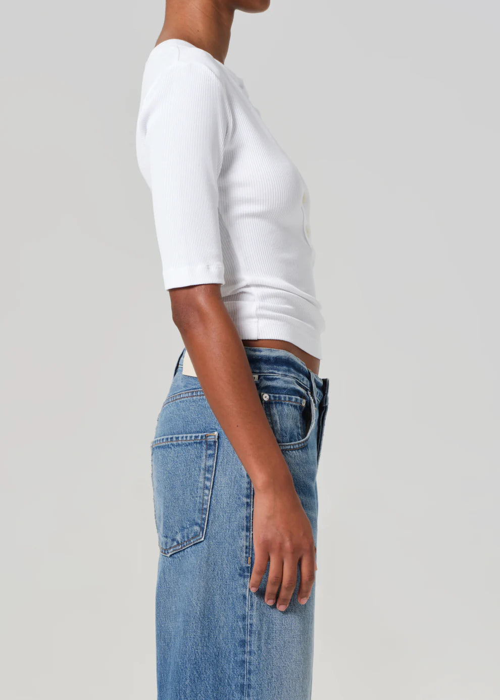 Crafted from ultra-soft ribbed organic cotton, this medium grey 3/4 sleeve henley offers a flattering, form-fitting silhouette that can be worn fully buttoned for a polished look or left undone for a more relaxed vibe. Designed for everyday ease and comfort, this versatile piece fits true to size.