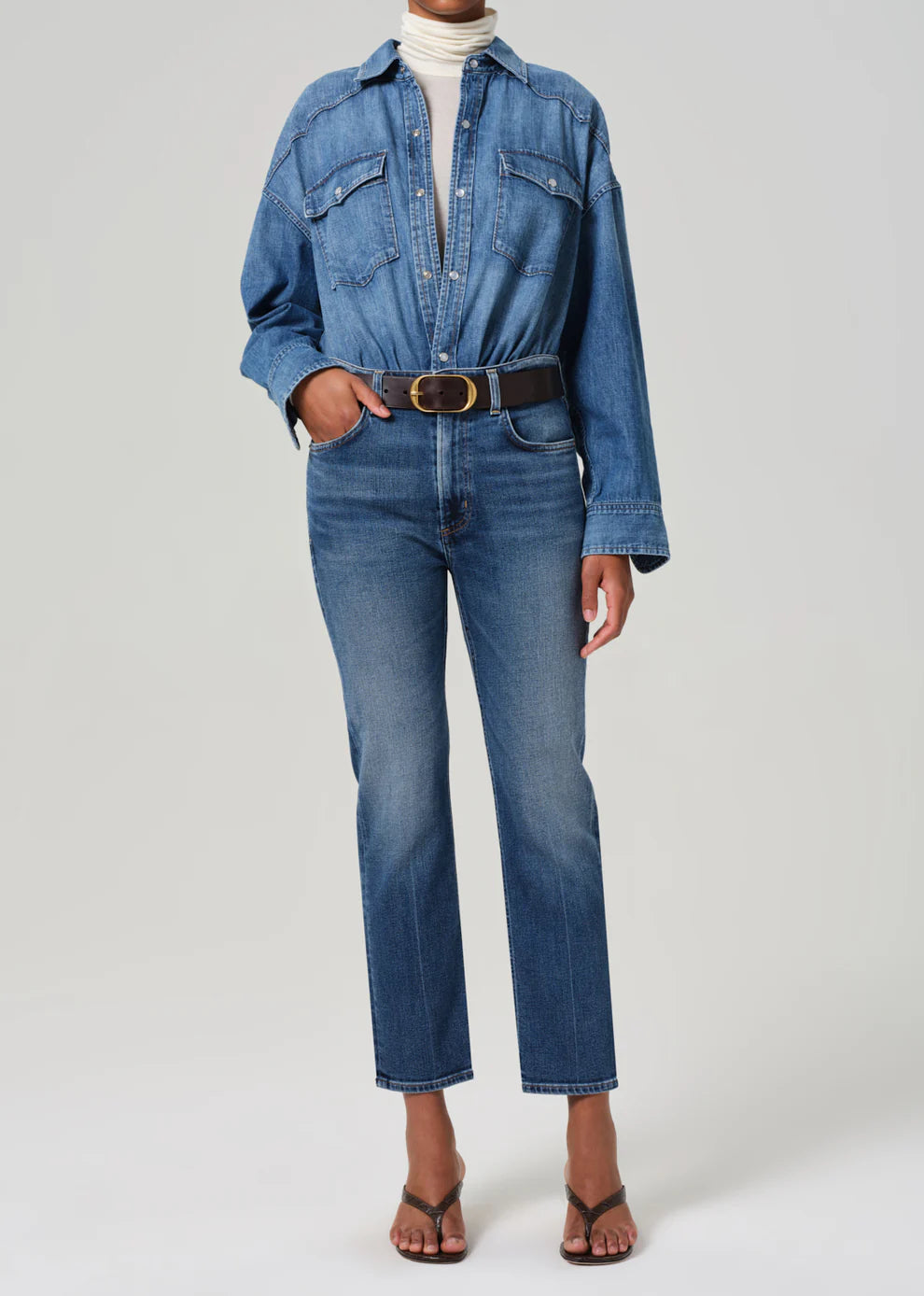 The Zurie Ankle features a contoured waist and a sleek, tailored top block that fits comfortably with just the right amount of ease. Its sculpted leg creates a refined, subtle bowed shape, giving this straight-leg style a distinctive, elevated touch.