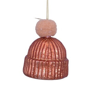 Glass Powder Brown Opal Hat w/ Pom Ornament