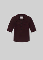 - Looks Like: Deep dark purple with brown undertones elbow sleeve polo shirt with front pockets