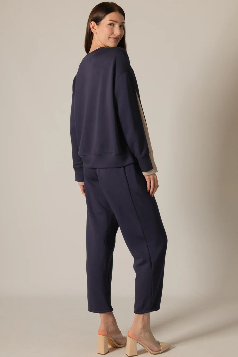 Josie Double Layered Sleeve Top in Navy/Taupe
