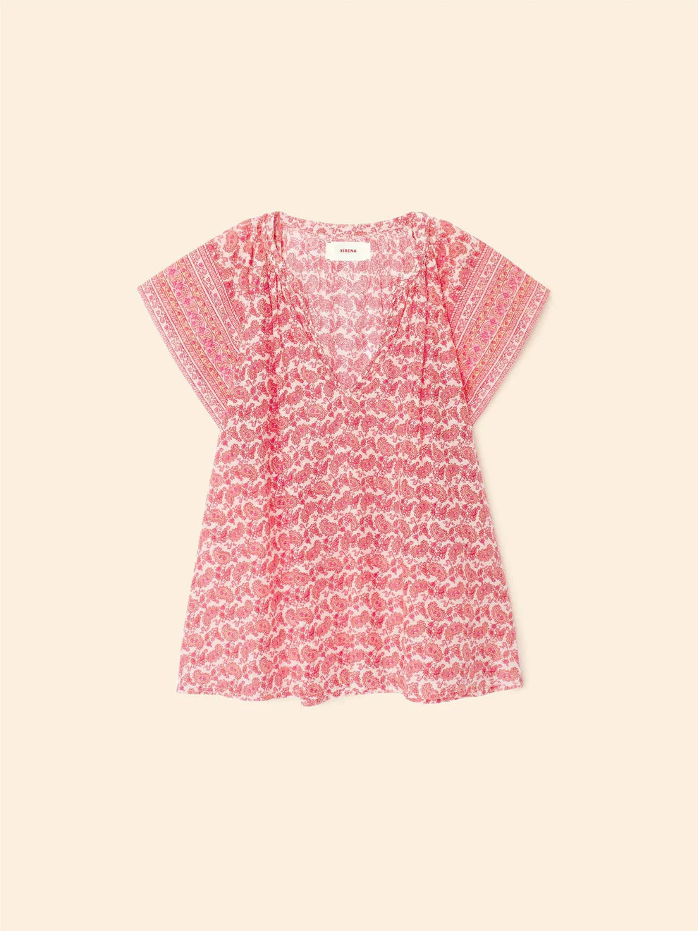 Pretty in print. The Clover Top is crafted from our new paisley border print cotton-silk voile, offering a lightweight feel with an elevated touch. Designed as an easy popover style, it features a flattering V-neckline with braided trim and delicate cap sleeves for a soft, feminine finish.