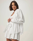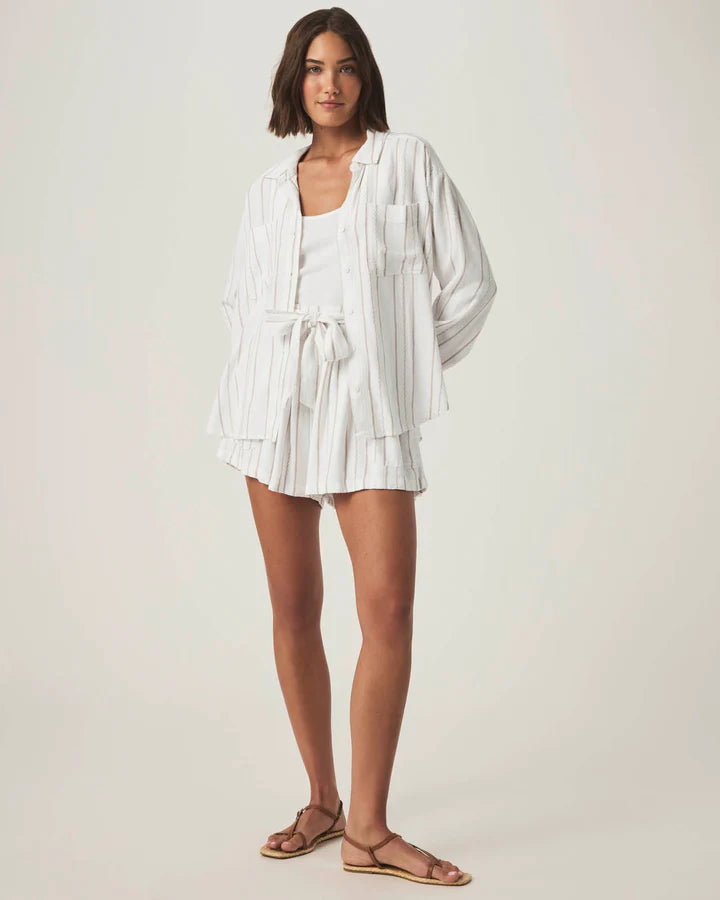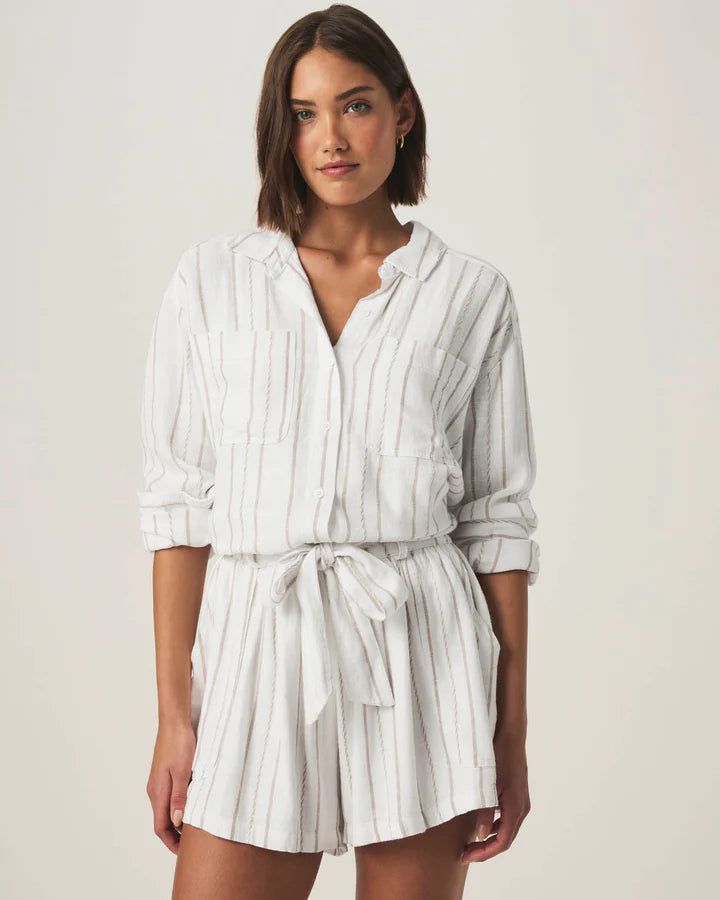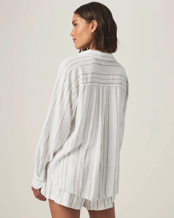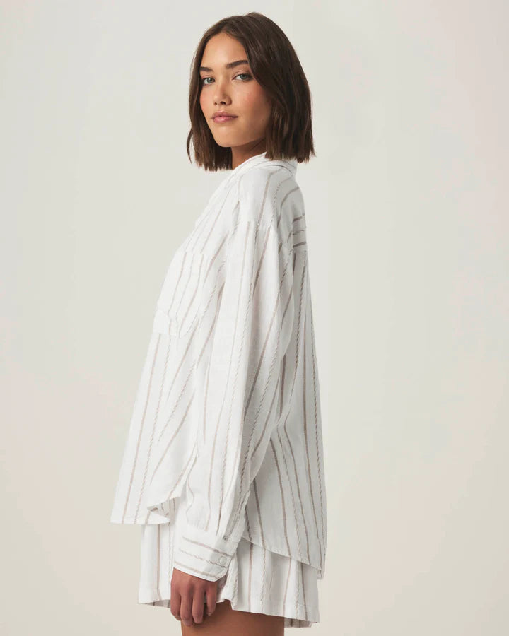Gabrielle Stripe Button Down Shirt in White Fawn