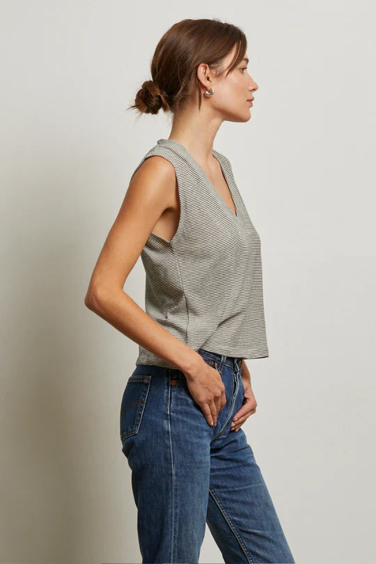 Lucy Stripe Jersey Tank in Ivory/Black Stripe