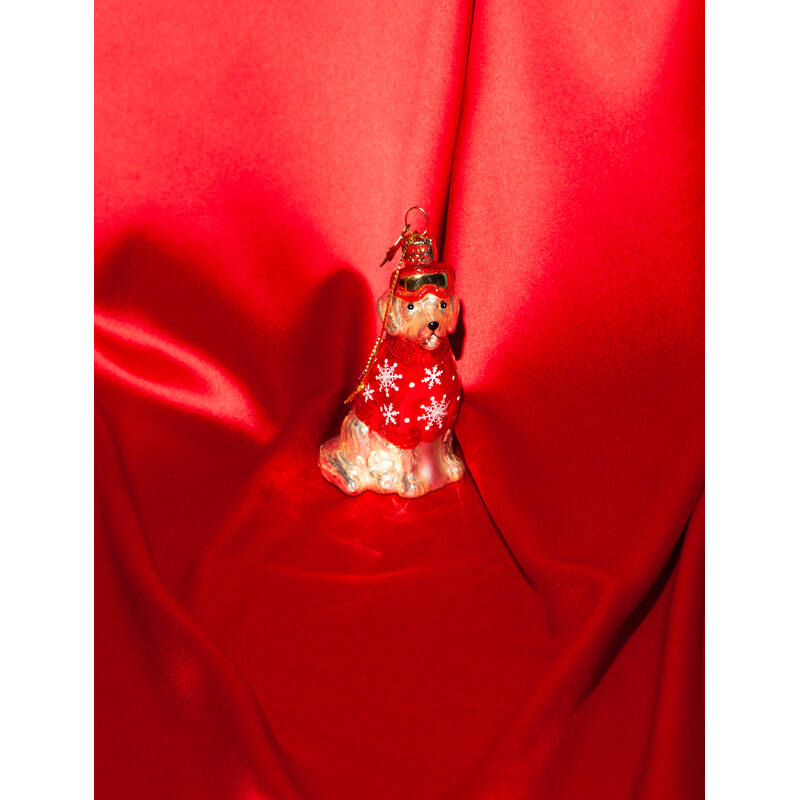 Glass Blond Golden Retriever w/ Red Ski Jacket Ornament
