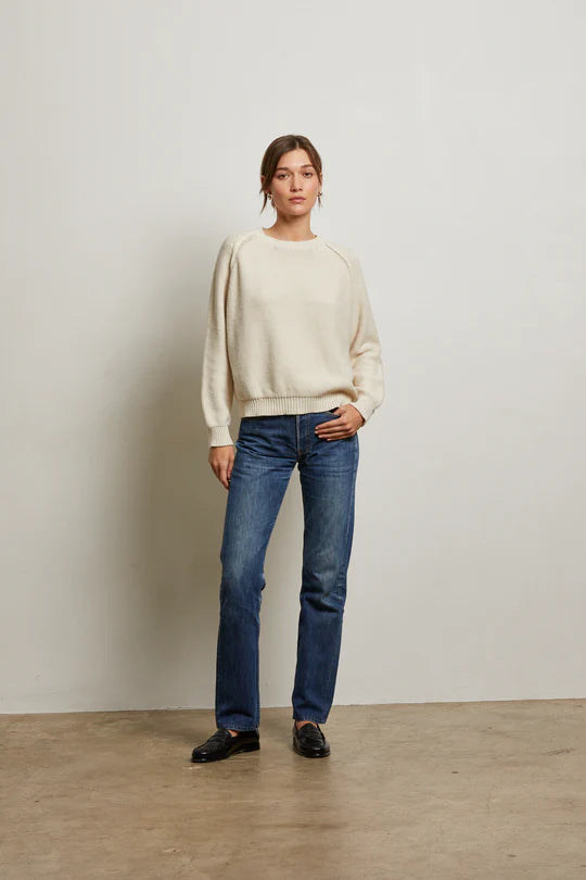 The Evie is our fresh take on the classic crew—simple, timeless, and just a touch unexpected. Crafted from 100% cotton, it’s designed with an inside-out raglan sleeve for that signature PerfectWhiteTee twist. Soft yet structured, it hits right at your natural waist for an easy, never-cropped fit that always stays in style.