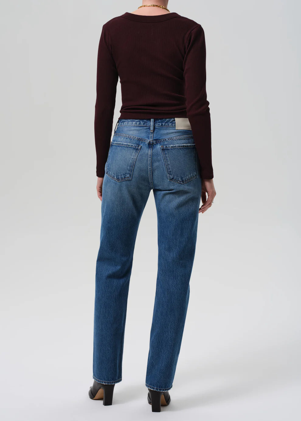 A refined essential with a modern edge, the Zurie Jean features a high-rise waist and straight leg for a clean, streamlined silhouette. Made from rigid regenerative cotton denim, it delivers lasting structure with a soft, broken-in feel from day one. The medium indigo wash gives it that perfect lived-in look, making it an easy go-to with everything from crisp button-downs to relaxed knits.